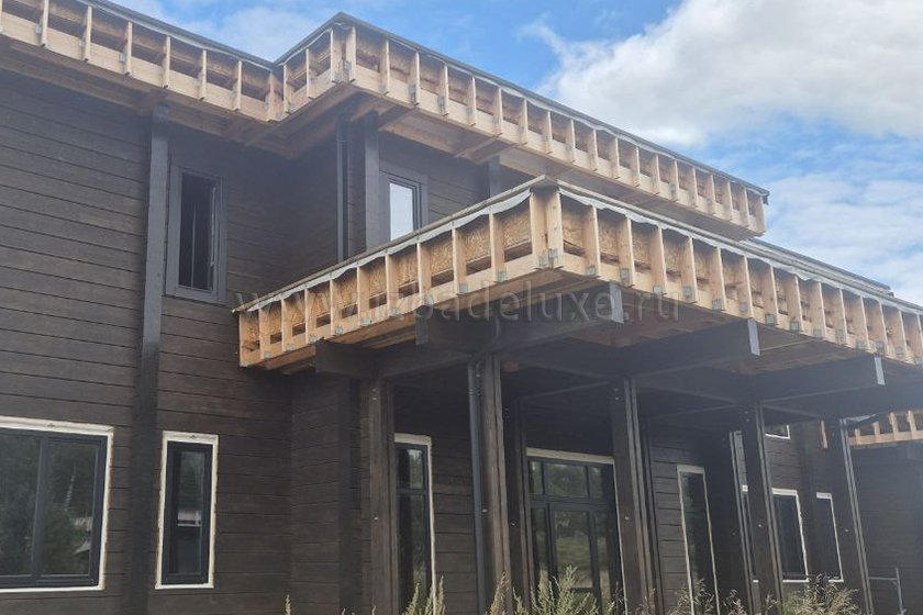 Наружные и внутренние стены ― клееный брус (двойная склейка по высоте), сечение 245 х 270(260) мм.