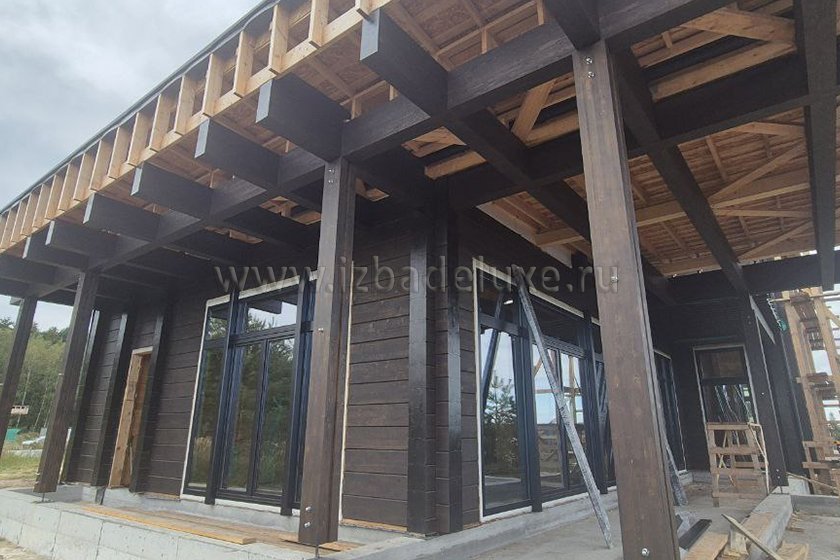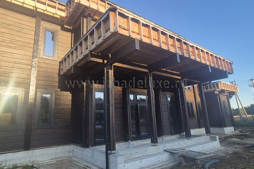 Наружные и внутренние стены ― клееный брус (двойная склейка по высоте), сечение 245 х 270(260) мм.