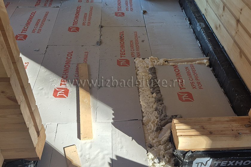 Наружные и внутренние стены ― клееный брус, сечение 175(185) х 205 мм.
