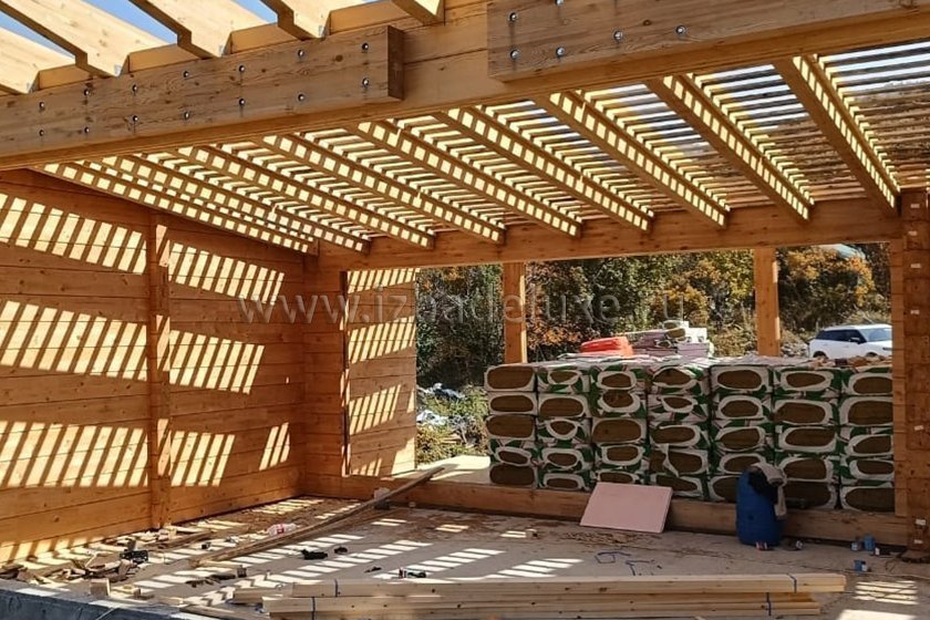 На объекте выполнена сборка стен домокомплекта. Продолжаются работы по монтажу кровельной системы.