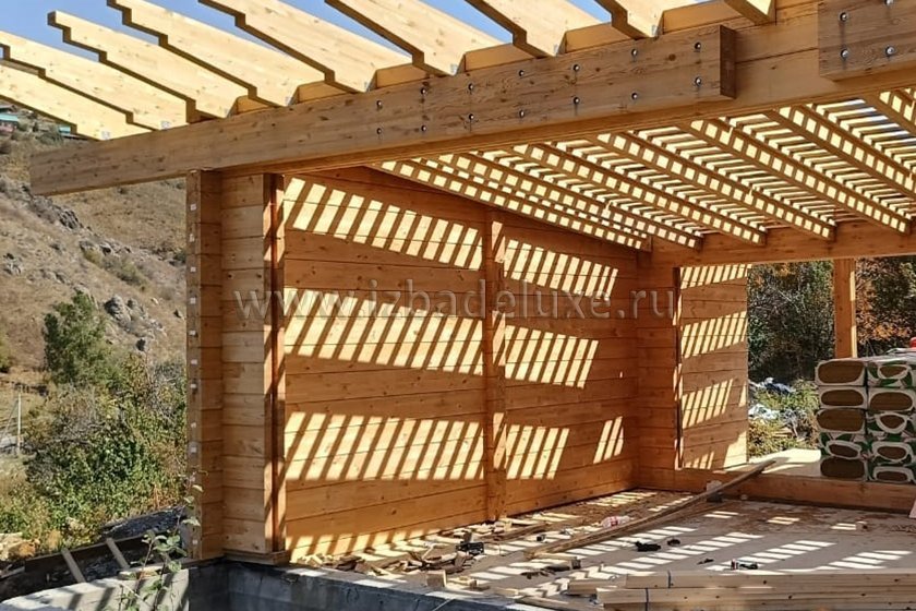 Наружные и внутренние стены ― клееный брус 260(270) х 205 мм (двойная склейка по высоте).