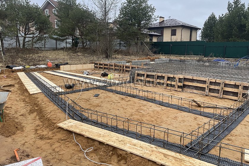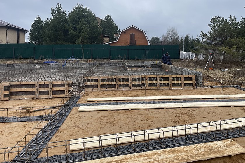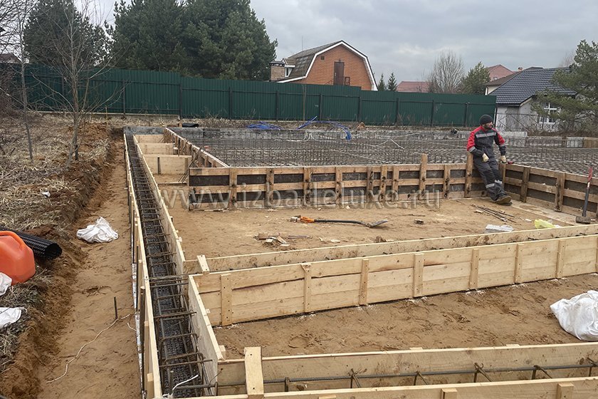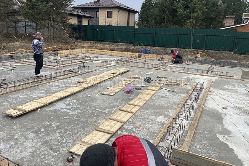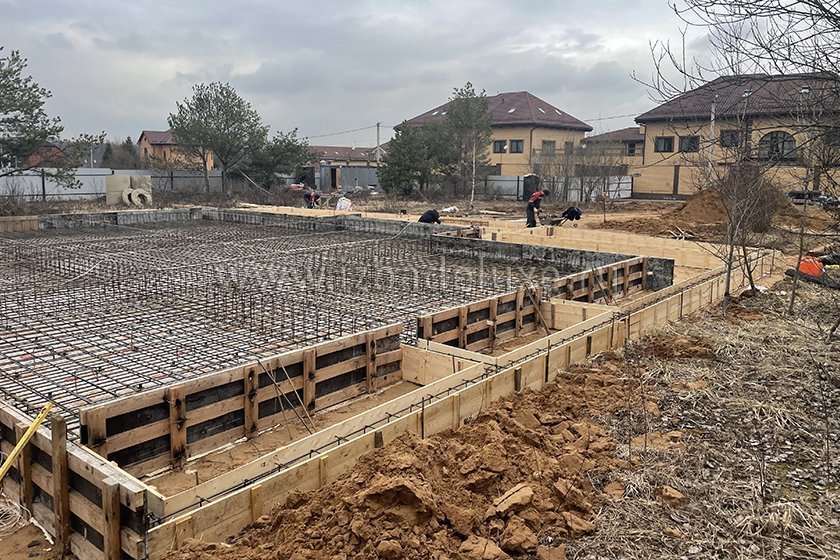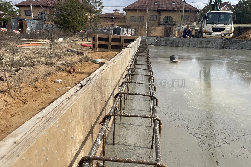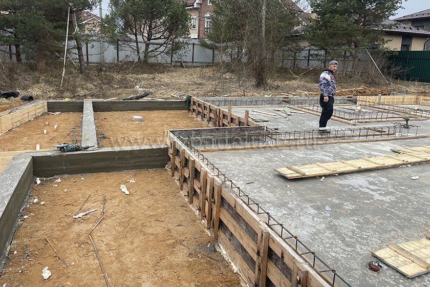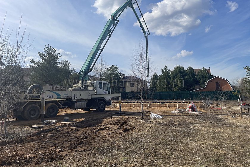 На объекте выполнили заливку бетоном плиты фундамента.