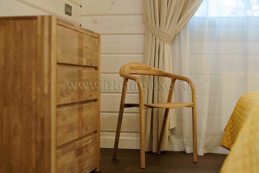 Наружные и внутренние стены ― клееный брус, сечение 260(270) х 205 мм. Материал ― сосна.
