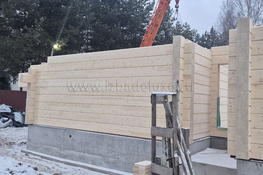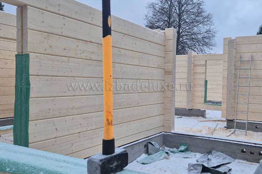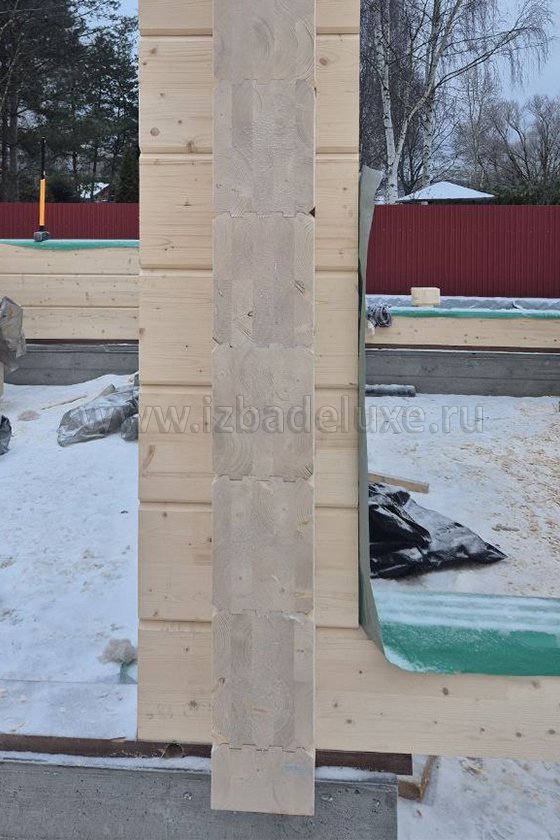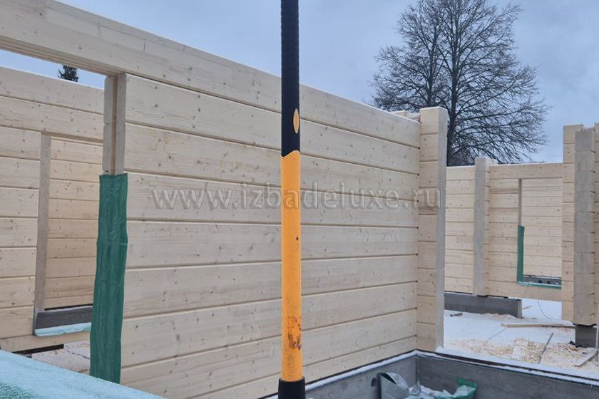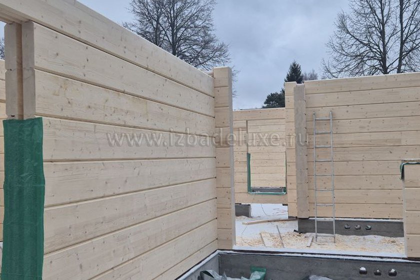 Наружные и внутренние стены ― клееный брус, сечение 260(270) х 205 мм.