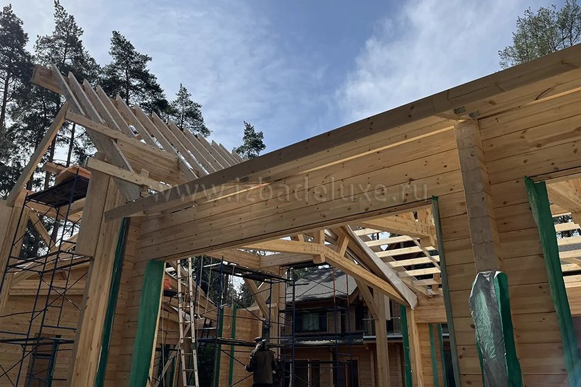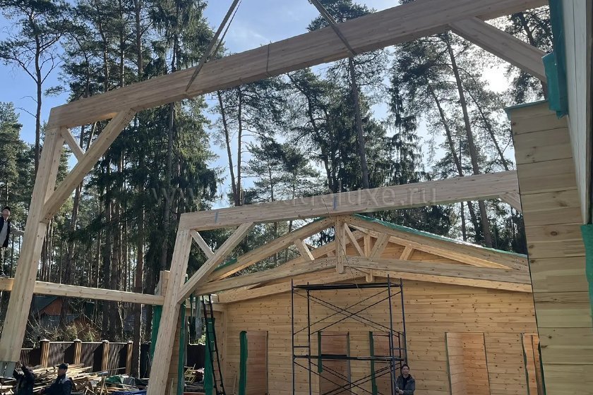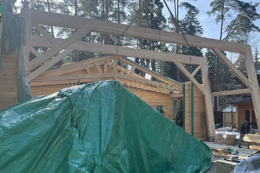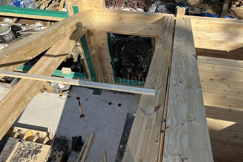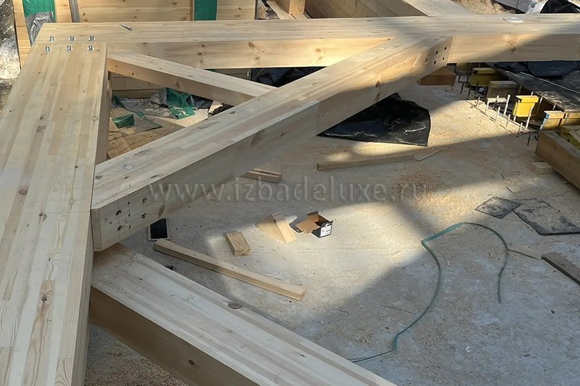 Наружные и внутренние стены ― клееный брус, сечение 260(270) х 205 мм.