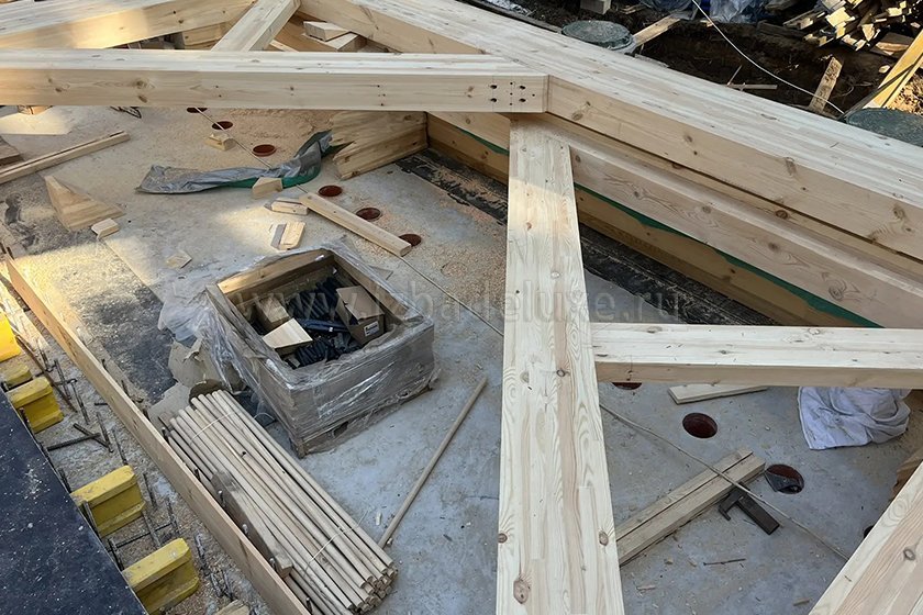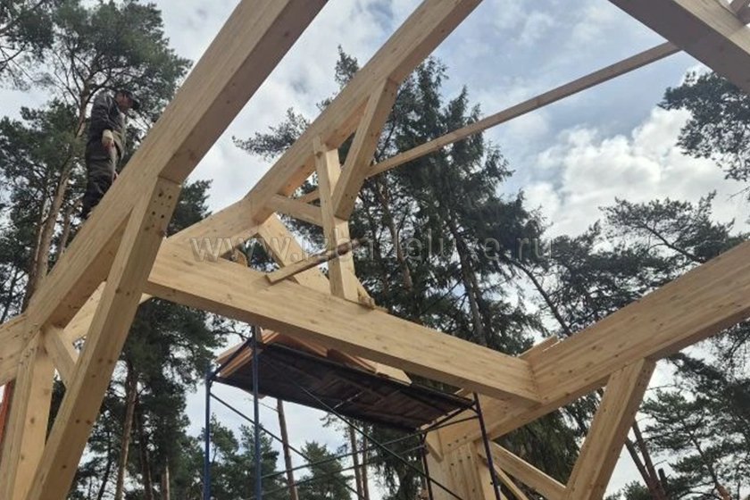 На объекта выполняется монтаж несущих элементов кровли.
