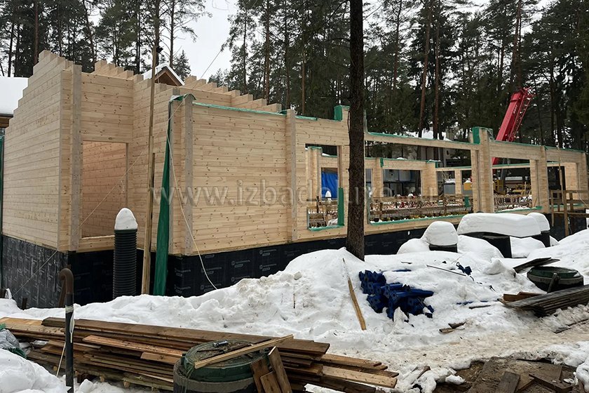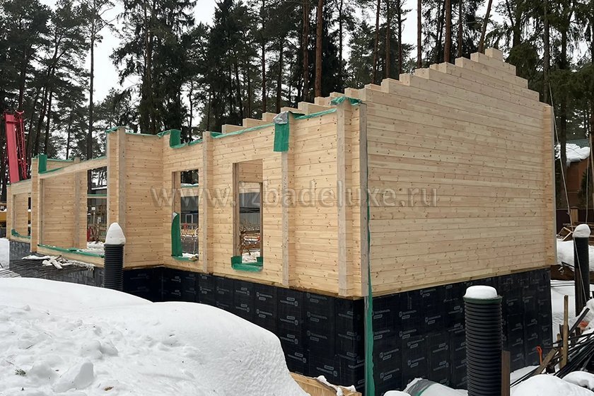 Наружные и внутренние стены ― клееный брус, сечение 260(270) х 205 мм.