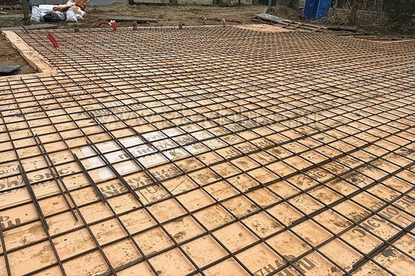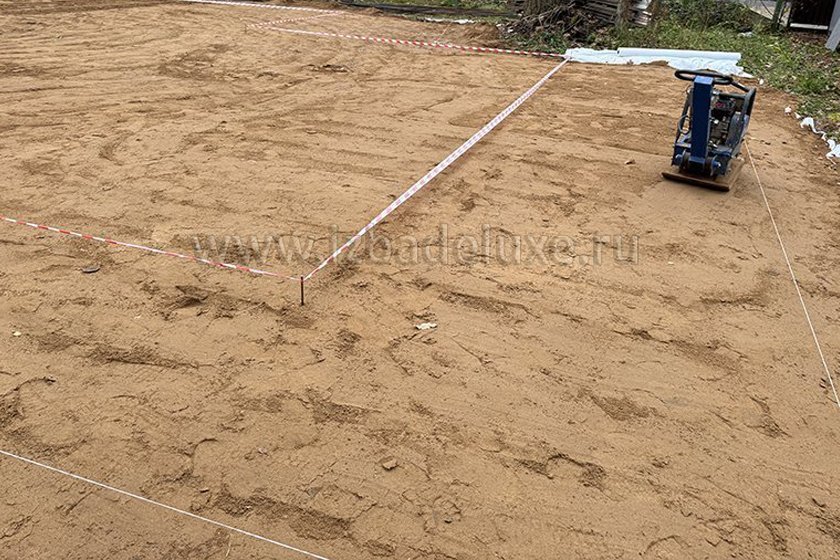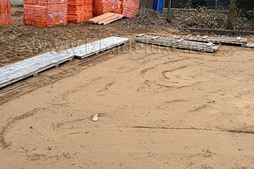 На объекте завершилось устройство песчаного основания с послойным уплотнением. Выполняются работы по армированию монолитной ж/б плиты фундамента.