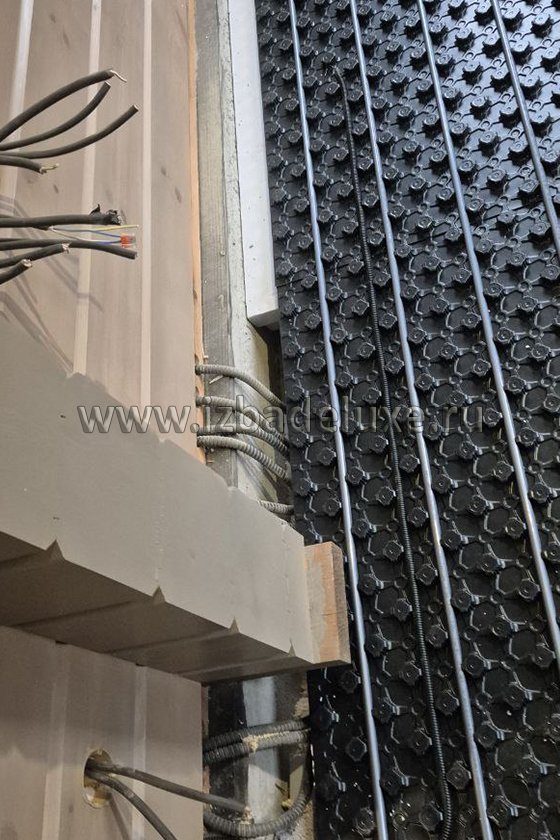 Наружные и внутренние стены ― клееный брус, сечение 180 (185) х 205 мм.