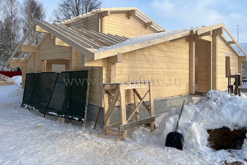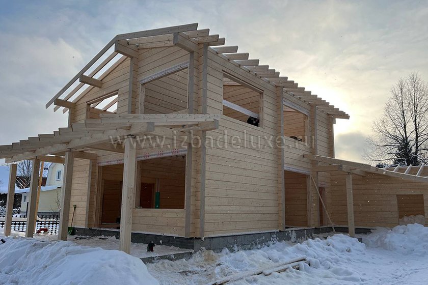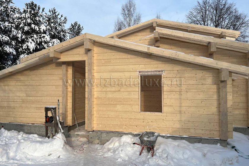 Наружные и внутренние стены ― клееный брус, сечение 260(270) х 205 мм.