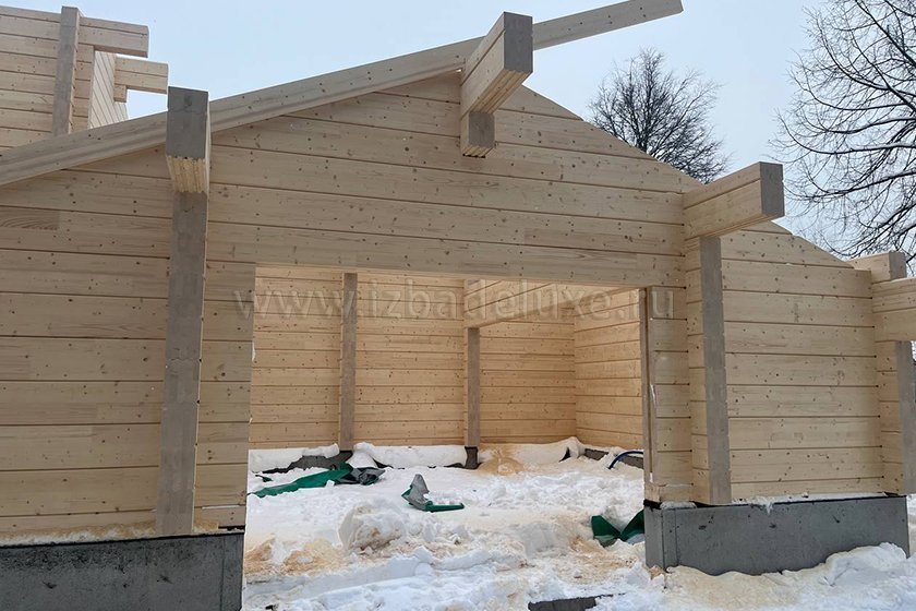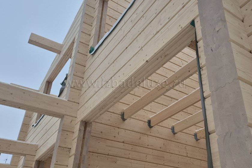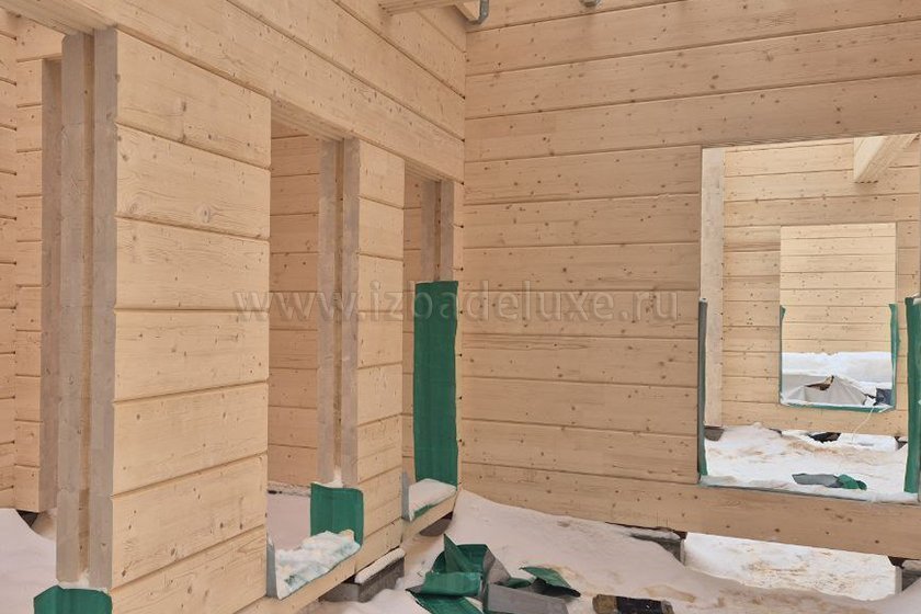 Наружные и внутренние стены ― клееный брус, сечение 260(270) х 205 мм.
