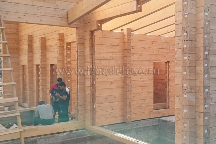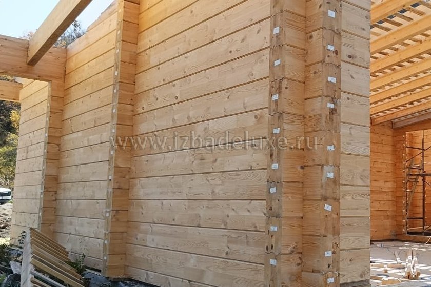Наружные и внутренние стены ― клееный брус 260(270) х 205 мм (двойная склейка по высоте).