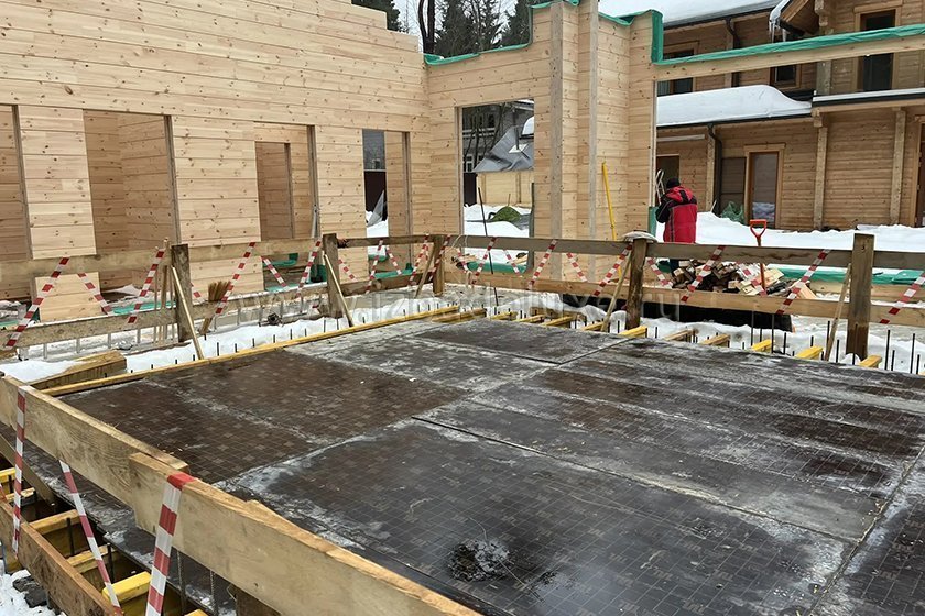 Фундамент здания ― свайно-ростверковый фундамент с монолитной плитой перекрытия.
