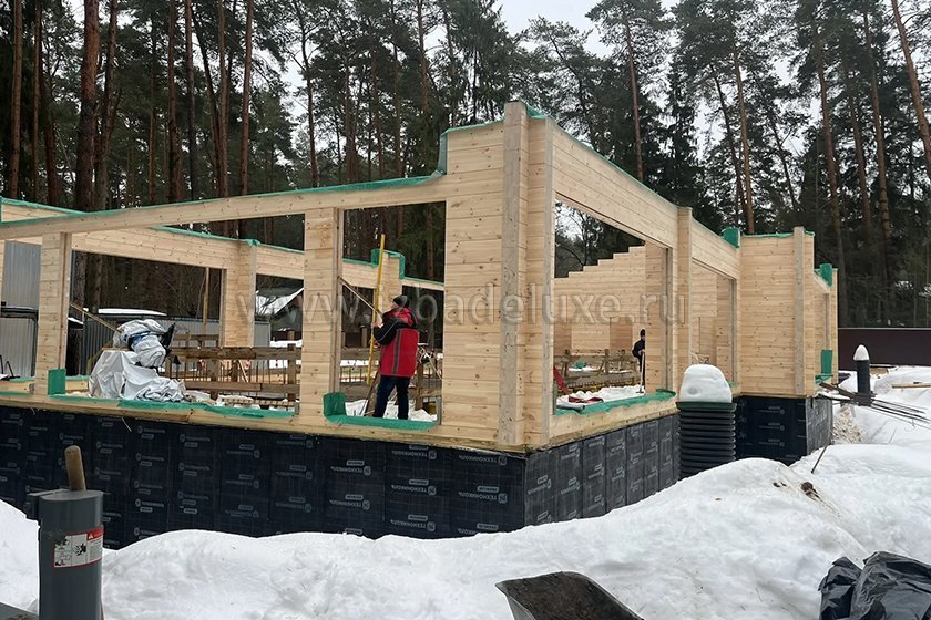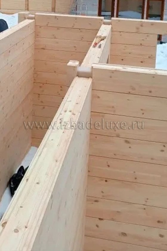 Наружные и внутренние стены ― клееный брус, сечение 260(270) х 205 мм.